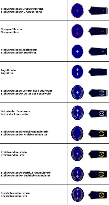 Führungskräfte der Freiwilligen Feuerwehren tragen zusätzlich zu den Dienstgradabzeichen ein Funktionsabzeichen, solange sie die Leitungsfunktion wahrnehmen.