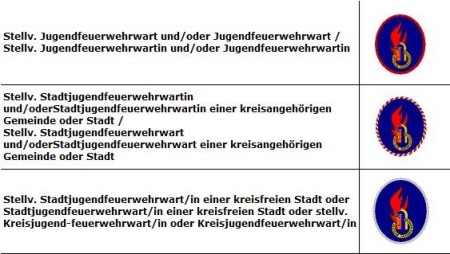 Leiter/in einer Feuerwehr, Kreisbrandmeister/in und deren Stellvertreterinnen oder Stellvertreter tragen ausschließlich Funktionsabzeichen.