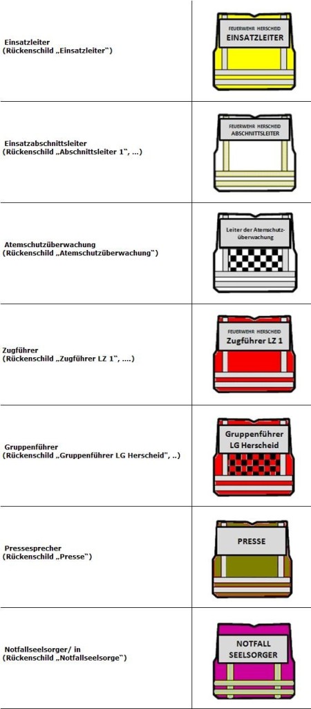Die Feuerwehr Herscheid ist seit 2009 mit folgenden Funktionswesten ausgestattet:
